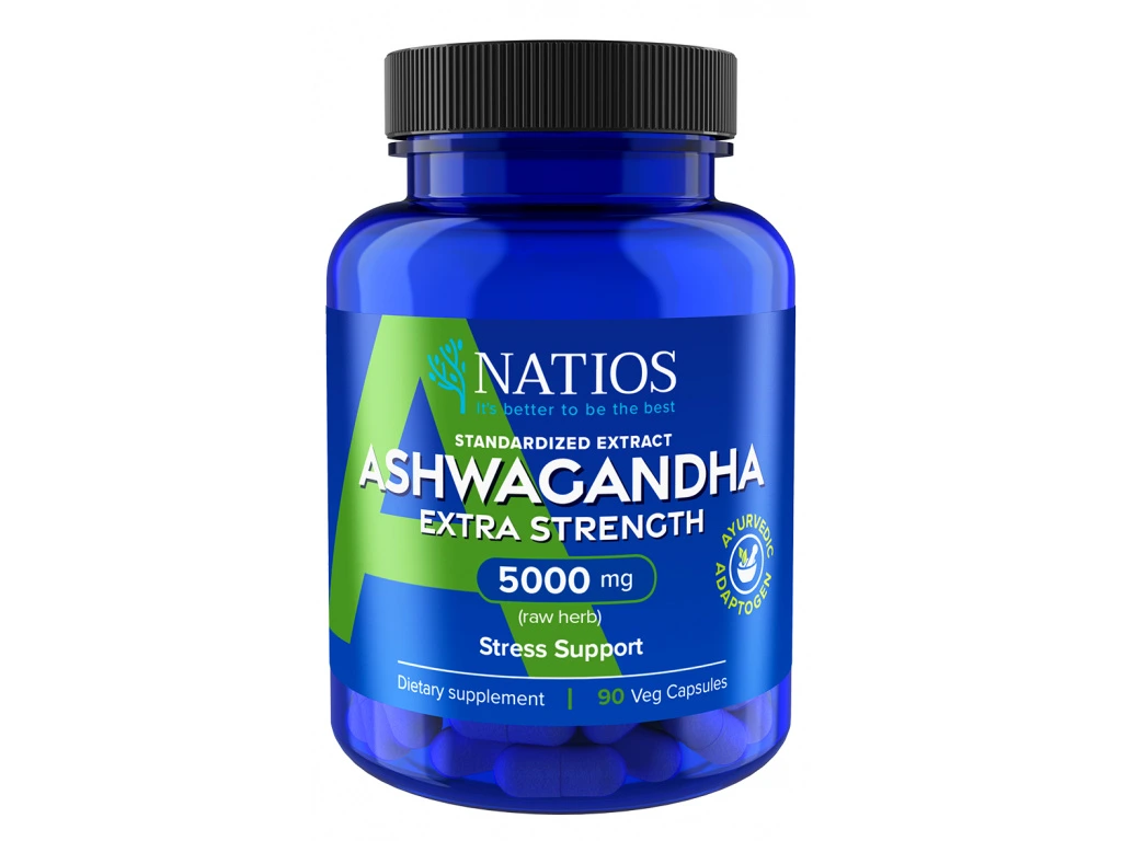 NATIOS Ashwagandha Extract, 5000 mg, Extra Strength, 90 veganských kapslí